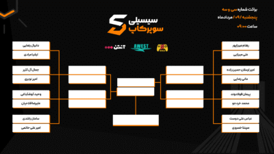 توجه مهم: تمام شرکت کنندگان باید حداکثر ۵ دقیقه قبل از شروع مسابقه در محل حاضر باشند. در صورت تأخیر بیش از ۵ دقیقه، طبق قوانین مسابقات، بازیکن از براکت حذف شده و رقیب او به عنوان برنده اعلام خواهد شد. رعایت این قانون برای حفظ نظم و جریان درست رقابتها بسیار ضروری است.